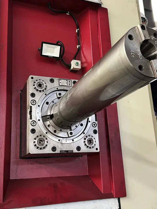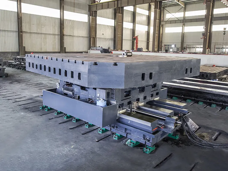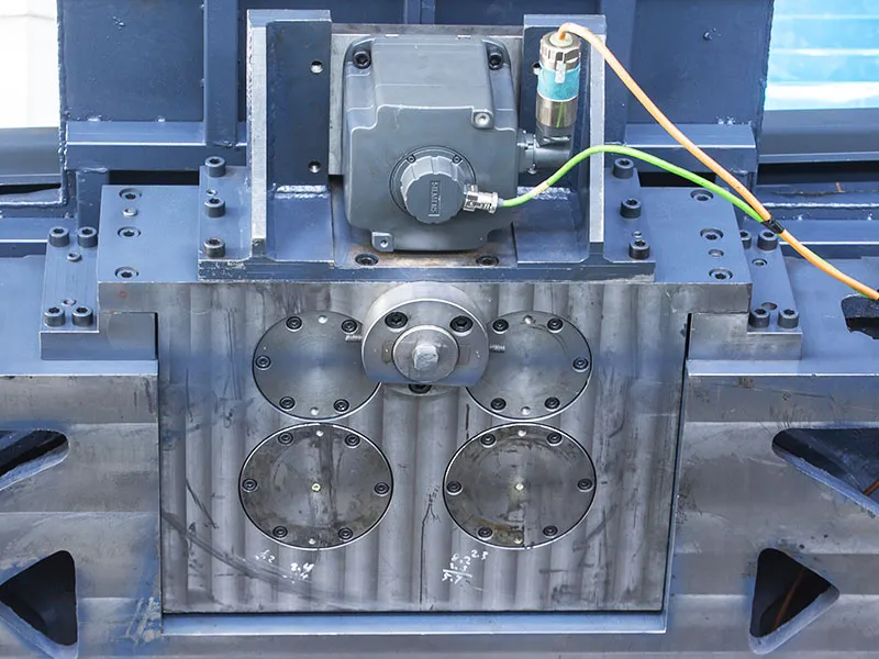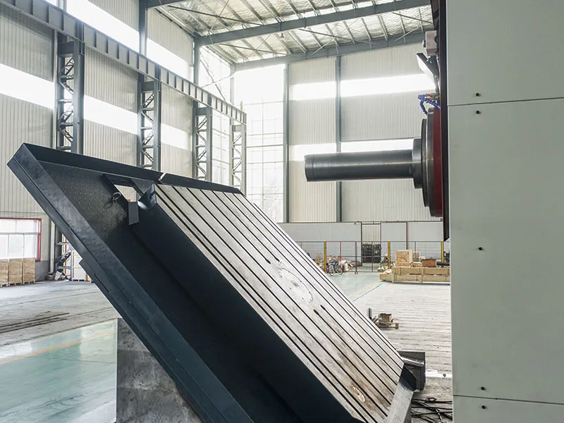 Bu ünite rastgele açı pozisyonlamaya izin verir. Döner eksen çift sıralı silindirik makaralı rulman kullanır ve üst kısmında merkezi boşaltma düzeni bulunur. Döner besleme mekanizması AC servo motorla çalışır, oynatmasız redüktör ve çift dişliler aracılığıyla büyük dişli halkayı tahrik eder. Bu yapı dişli boşluğunu otomatik giderir ve yüksek aktarım doğruluğu sağlar. İşleme sırasında hidrolik yüzen sıkıştırma ile güvenilir yağ filmi kalınlığı korunur.