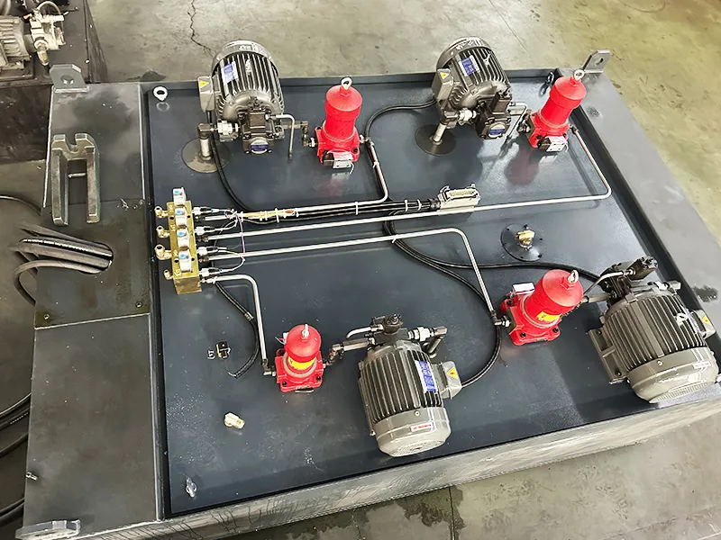 Sabit sıcaklık yağ soğutuculu bir hidrolik istasyon puntalar ve mil grubu yağlama/soğutmayı üstlenir. Diğer hidrolik istasyon mil hızı değişimi, takım serbest bırakma ve döner tabla klemplendirmeyi yönetir. Hidrostatik kılavuz seçilirse, pompa ve besleme sisteme entegre edilir. Tüm bileşenler uluslararası montaj standartlarına uygundur.