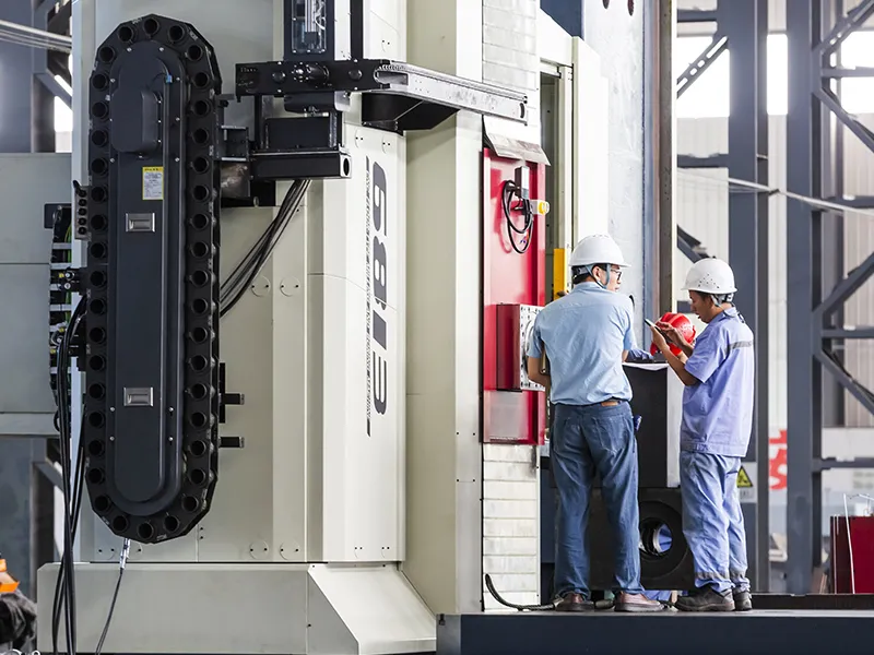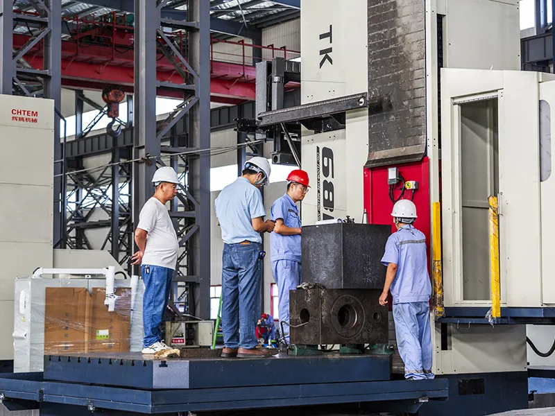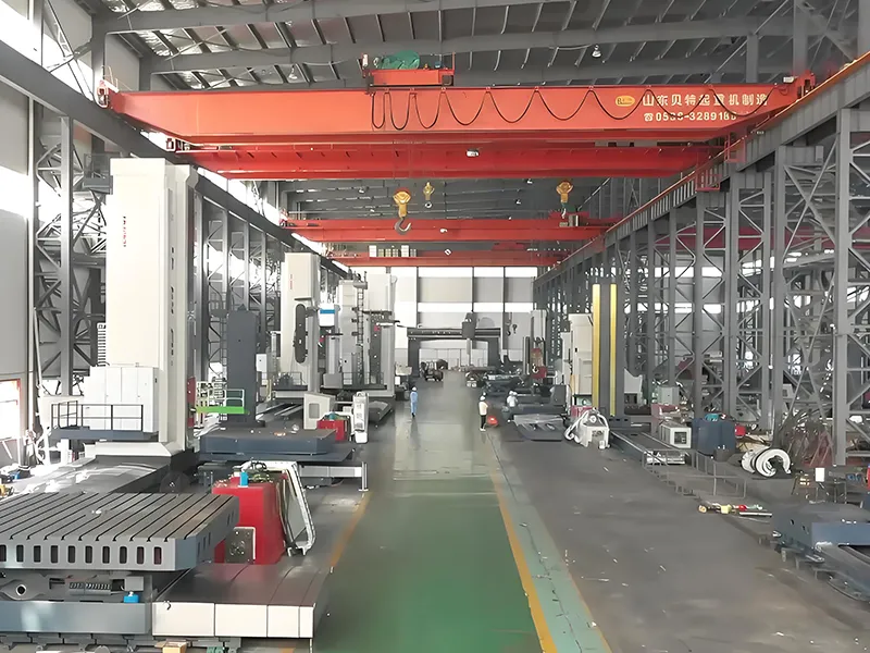 Nihai montaj atölyemizde, parçalar depodan alınır ve kolonlar ile dönme tablaları, üretim planları ve prosedürlere titizlikle uygun olarak birleştirilir. Ardından, alt montaj atölyesinden gelen yarı mamul güç kafaları, dişli kutuları, freze kafaları ve diğer tüm bileşenler, makine takımının ana yapısına özenle monte edilir.