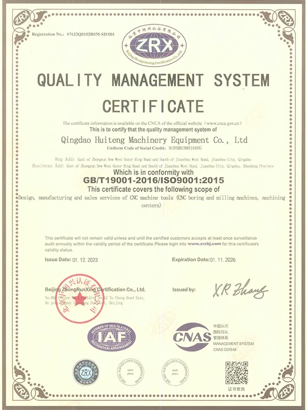 CHTEM olarak, uzun yıllara dayanan deneyimimizle, CNC ve dijital göstergeli işleme merkezlerinin tasarım, geliştirme, test ve üretiminde güçlü yetenekler kazandık. Çin'in önde gelen büyük ölçekli makine takımı üreticilerinden biri olarak, eksiksiz bir CNC ürün portföyüne sahibiz. Kaliteye olan taahhüdümüz, ISO9001:2000 uluslararası kalite yönetim sistemi sertifikamız ve Ulusal Teknik Denetim Bürosu'nun mekanik ürün kalite denetiminden başarıyla geçmemizle kanıtlanmıştır.